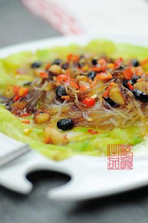 娃娃菜1至2颗,粉丝一把(事先用水泡软),小红辣椒2根(新鲜的),大蒜一头,豆豉一勺,白胡椒粉1/4小勺,蚝油一勺,生抽一小勺,色拉油2大勺