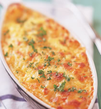 3.取作法1的蛋白塞入作法2抹平,撒上少许起司丝及巴西里末,入烤箱烤约5分钟即可。