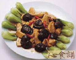 (5)用青江菜围边,上盛冬菇、冬笋即可。