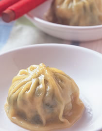 3.每片面皮填入作法2约25公克,包成小笼包形状后,放入蒸笼中。