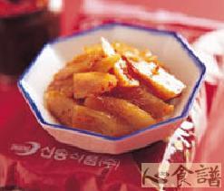 (3)将调味料(2)全部加入大头菜片中搅拌均匀,置于阴凉处腌渍待其入味即可食用,置于冷藏约可保存10天。