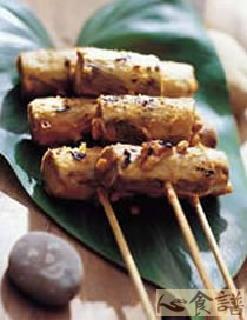 第一种:素菜菜谱牛蒡花生酱串做法