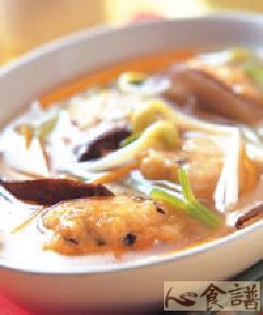 2.取一汤锅,放入素高汤煮开后,再把作法1的所有材料和香菇丸放入一起继续煮,直到材料变软。