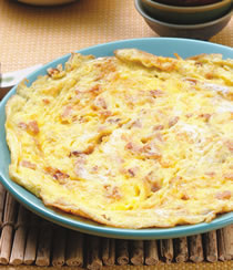 (5)将上述蛋液倒入平底锅中,煎熟即可盛起食用。