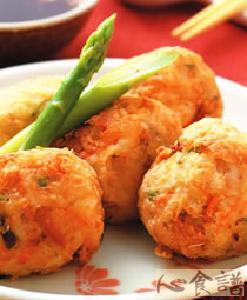 4.起一油锅,待油烧热至170℃后,将作法3的丸子放入锅中油炸呈金黄酥脆,捞起沥干油,盛盘备用。