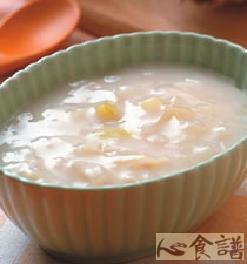 3.将玉米粉加入凉开水调匀,并慢慢加入锅中勾芡即可熄火待凉,放凉后再加入鲜奶油调匀即可。