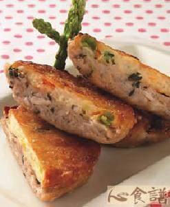 4.将素甜不辣覆上作法3的馅料,黏合后放入油温约170℃的油锅中,以中火炸至表面呈酥脆状即可。