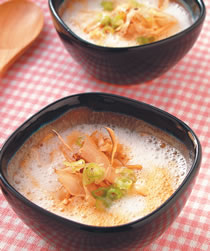 2.将所有调味料调匀,淋至作法1的山药泥上,撒上柴鱼丝及葱花即可。
