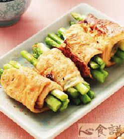 第一种:素菜菜谱腐衣煎芦笋做法