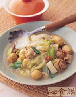 (3)将锅子预热,放入葱段、辣椒片爆香,再放入香菇丝略炒后,加入大白菜翻炒至半软后,放入洋菇、鹌鹑蛋翻炒数下后,加入所有调味料,以大火熬煮至大白菜软化熟透(约需5∼8分钟)熄火,盛起放入盘中即可食用。