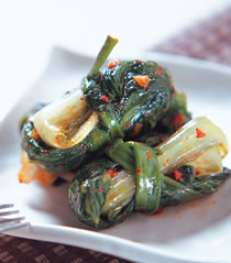 韭菜泡菜、奶油烤白菜、生菜捲、菠菜红丝