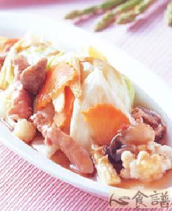 第五种:素菜菜谱虾露什锦菜 (什锦菜炒鸡丁)做法