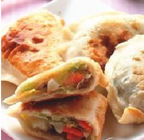 韭菜盒子面皮12个,沙拉油1大匙,馅料:1把,高丽菜150公克,香菇60公克,红萝卜80公克,豆干50公克,盐5公克,鸡粉3公克,胡椒粉1/4茶匙,香油20公克