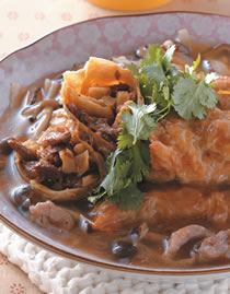 4.将作法3的汤汁淋在作法2的素豆包上,再加上香菜即可。