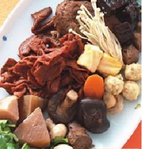 1.将卤料一一洗净,将红萝卜、白萝卜、豆鸡、素肉、素鸭、洋菇、香菇切成适当大小,备用。