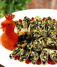 韭黄素春卷、豆腐脑素三鲜、鱼香素斋、扒三素、什蔬素烩
