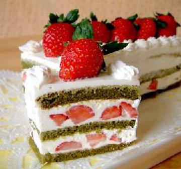 第一种:素菜菜谱素食绿茶草莓糕做法