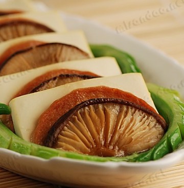 4) 一片豆腐,一片素火腿,半片香菇,依次摆放;