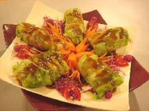 第一种:鱼类菜谱三文鱼花菜卷做法