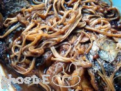 1.鱼杀后去内脏和鳃,洗净擦干水。金针菇去根洗净剪成2段。
