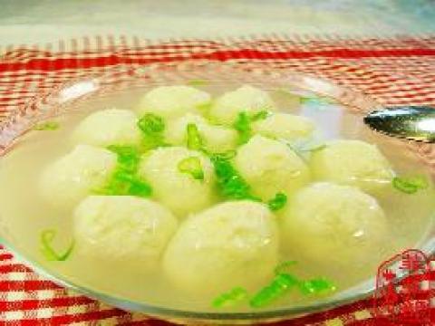 福州鱼丸2颗,葱花5公克,高汤400㏄,盐1/2茶匙,鸡精粉1/2茶匙,白胡椒粉1/8茶匙,香油1/8茶匙