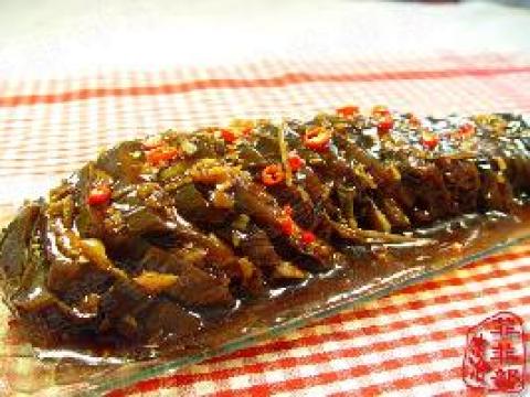 7.锅内用少量淀粉勾芡浇在茄子上即可。