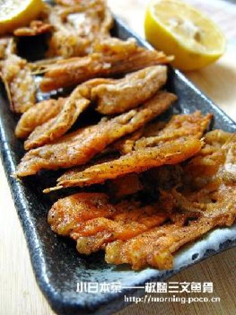 三文鱼骨,椒盐,柠檬