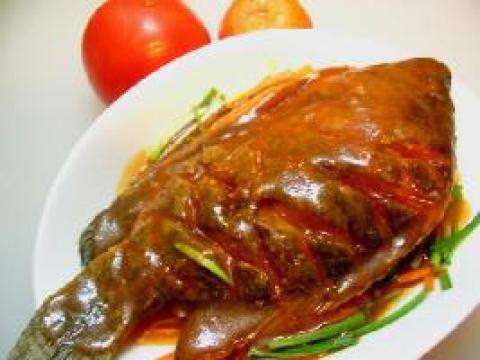 2.炸好后放在碟上,最好在面上撒少少白胡椒面,再用茄汁、柠檬汁、糖、生粉兑成芡汁,在锅内加热至起泡和透明,淋上鱼面。