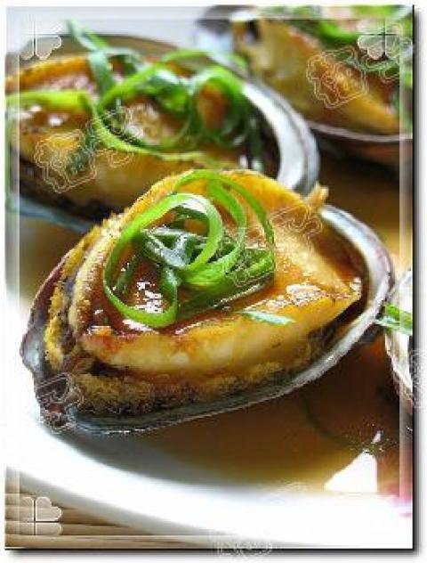 4.要pl再加点新鲜的葱丝摆在上面.热油锅.把烧热的油浇在鲍鱼上.此时可加点酱油(可调点糖和香油).千万不要放蒜蓉啊.那个味蒸鲍鱼是糟蹋东西了.