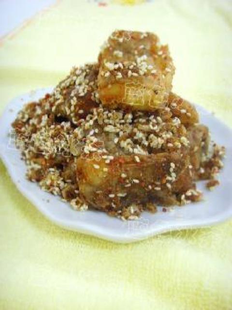 4.锅中留底油,烧热后,放入适量芝麻,辣椒粉,十三香粉,盐,鸡粉翻炒片刻后,加入炸好的鳕鱼,翻炒均匀即可。