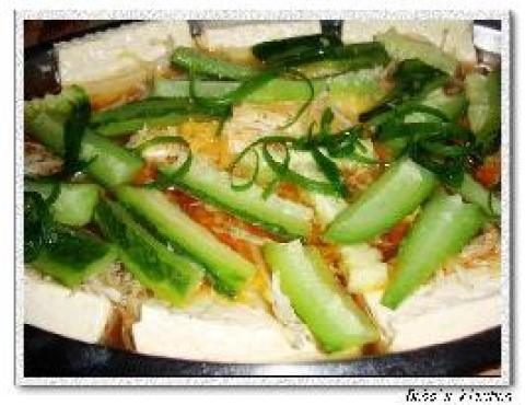 第一种:鱼类菜谱银鱼丝瓜蒸豆腐做法