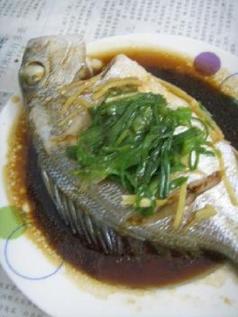 主料:红立鱼1条,辅料:葱姜丝,调料:海鲜酱油,花生油