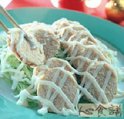 4.将作法2的鱼卵切片摆置作法3的高丽菜丝上,再挤上适量沙拉酱即可。