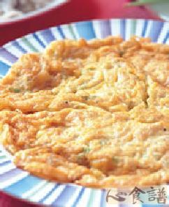 4.热锅放入约2大匙油烧热,倒入作法3蛋液煎至两面焦黄即可。