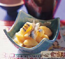 (3)将嫩姜芽的盐水沥干并用冷开水洗净,再次彻底沥干水份,加入调味料(2)及黄金针鱼,冷藏腌渍约3∼4小时待其入味后即可食用,冷藏约可保存1週。