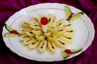 8.上桌时,切菱形块或片。