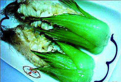 主料:鲈鱼一条,鸡蛋一只,小塘菜一棵。配料:盐,白糖,生粉,胡椒粉,姜汁,料酒各适量。