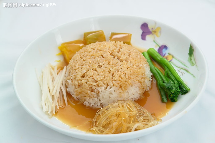8.泰国香米煮熟,每人一小碗,拌入做好的鱼翅羹即成鱼翅捞饭。