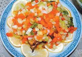 3、坐煎锅加入适量黄油,待化开后加入柠檬汁,芹菜末略炒出汁,淋在鱼片上即可食用。