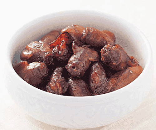 (5) 为了协调颜色与味道﹐上下翻动并炖至小鱿鱼收缩变小﹐汤熬干﹐有光泽为止。