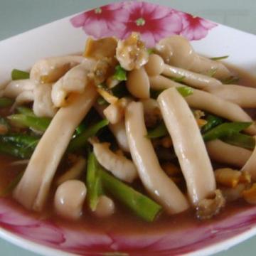3、待海鲜菇变软,放入蚝油,盐,生姜粉调味,即可出锅。
