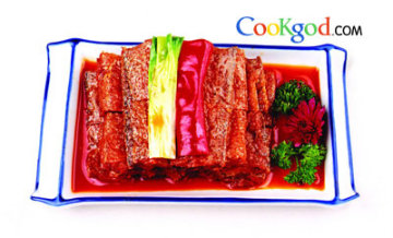 色泽红亮,辣中略带甜酸,讲究热烹凉吃。
