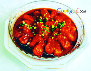 (2)热好油锅后,放入吴郭鱼炸至熟呈金黄色后,捞起并将油沥干,放入盘中。