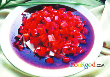 3.将作法2的咸鱼片摆放在作法1的豆腐上。