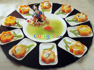 第五种:鱼类菜谱玉米鲜奶金瓜盅做法