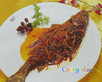 主料红鱼配料肉丝、笋丝、木耳丝、榨菜丝、干辣椒调料盐、味精、糖、醋、酱油、百瓣酱、料酒、辣椒油、香油