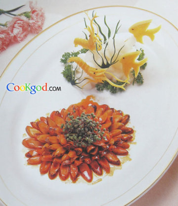 鲍鱼上色不宜过深,炸时不宜过长,以免色深、质老。