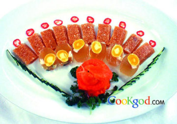 梅汁烟鳕鱼、鸳鸯桂鱼、茶香银鳕鱼、鱼池莲藕、蒜香目鱼花
