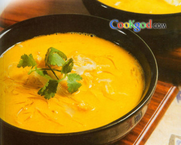 (3)龙汤200g加鱼翅,精盐2g,味精1g,撒胡椒粉尝口,盛入热汤碗里,面上放香菜即可。