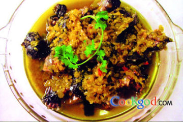 3、将调好的蒸鱼料均匀地淋在水鱼上大火蒸15分钟即成。
